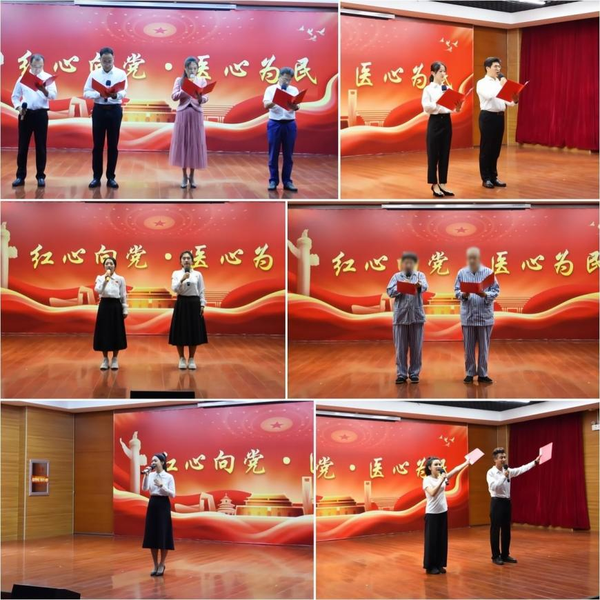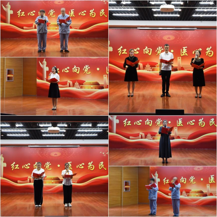 经过预赛,职工组共有八组选手进入决赛,养员组有三组选手进入决赛。比赛开始前,党总支书记、院长李学松代表院领导班子致辞,向奋战在康宁医院各个岗位的全体同仁致以节日的问候及衷心的感谢!比赛在院领导班子成员带来的诗朗诵《那是我的祖国》中拉开序幕。